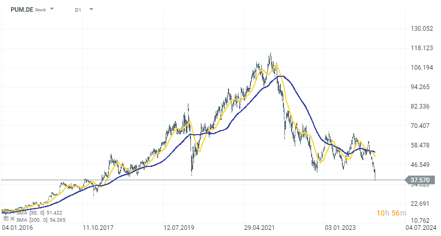 Po prudkom poklese ceny v predchádzajúci deň akcie spoločnosti Puma (PUM.DE) vo štvrtok zažili ďalší pokles a dosiahli najnižšiu úroveň od roku 2018 s ďalším poklesom o 2,3 %. Analytici spochybňujú budúcu prevádzkovú flexibilitu Pumy v dôsledku vysokej a nepružnej nákladovej základne, pričom zdôrazňujú neistotu a nedostatok krátkodobých cenových faktorov. Na druhej strane všetky negatívne správy by sa už mohli premietnuť do ceny akcií Pumy.