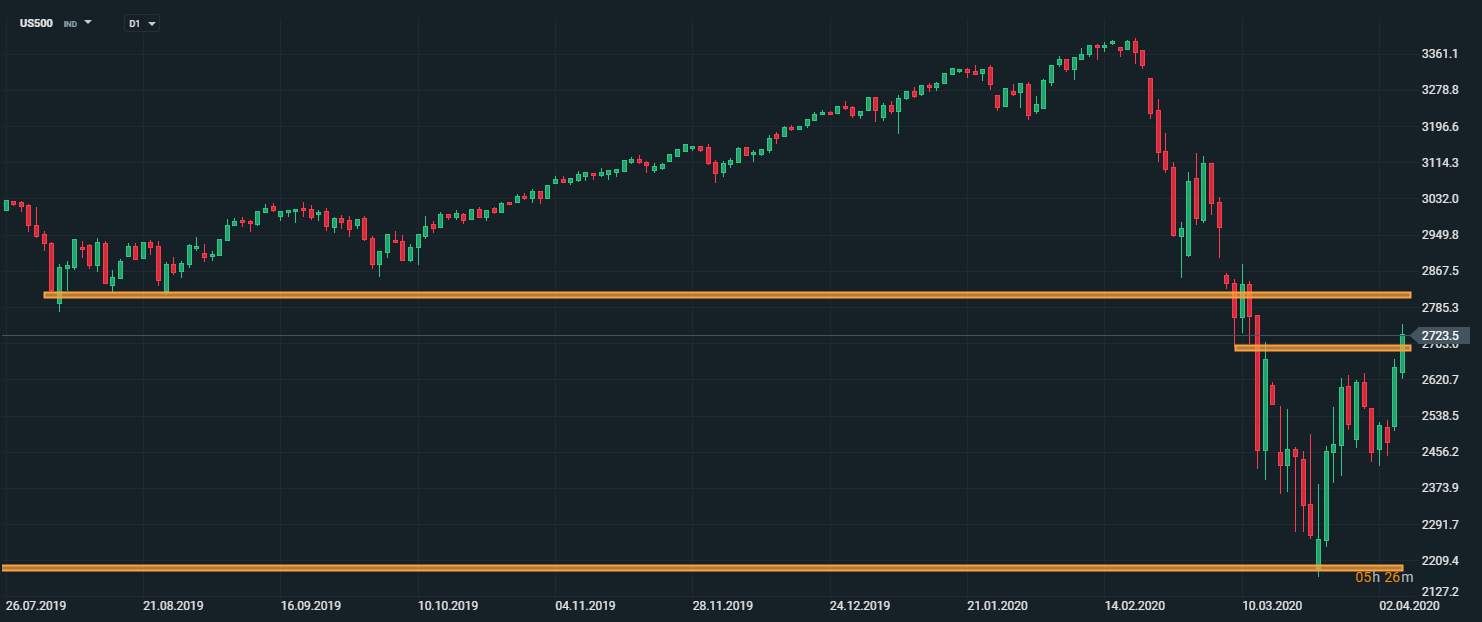 Americký akciový index US500 dnes prekonal hranicu 2700 bodov a približuje sa ku kľúčovej rezistencii na úrovni 2800 bodov. Ďalší vývoj bude závisieť od spôsobu šírenia vírusu. V prípade, ak opäť dôjde k zrýchleniu šírenia nákazy, pozitívna nálada sa môže z trhov vytratiť. Zdroj: xStation5