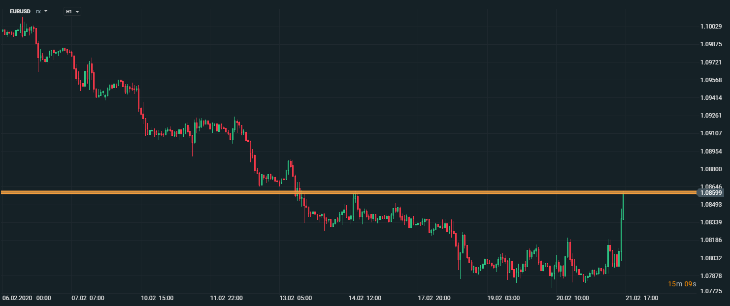Menový pár EURUSD testuje rezistenciu na úrovni 1,08600. V prípade, ak dokáže uzatvoriť týždenná sviečka nad spomínanou úrovňou, otvorí sa priestor pre rast k hladine 1,09. Zdroj: xStation5
