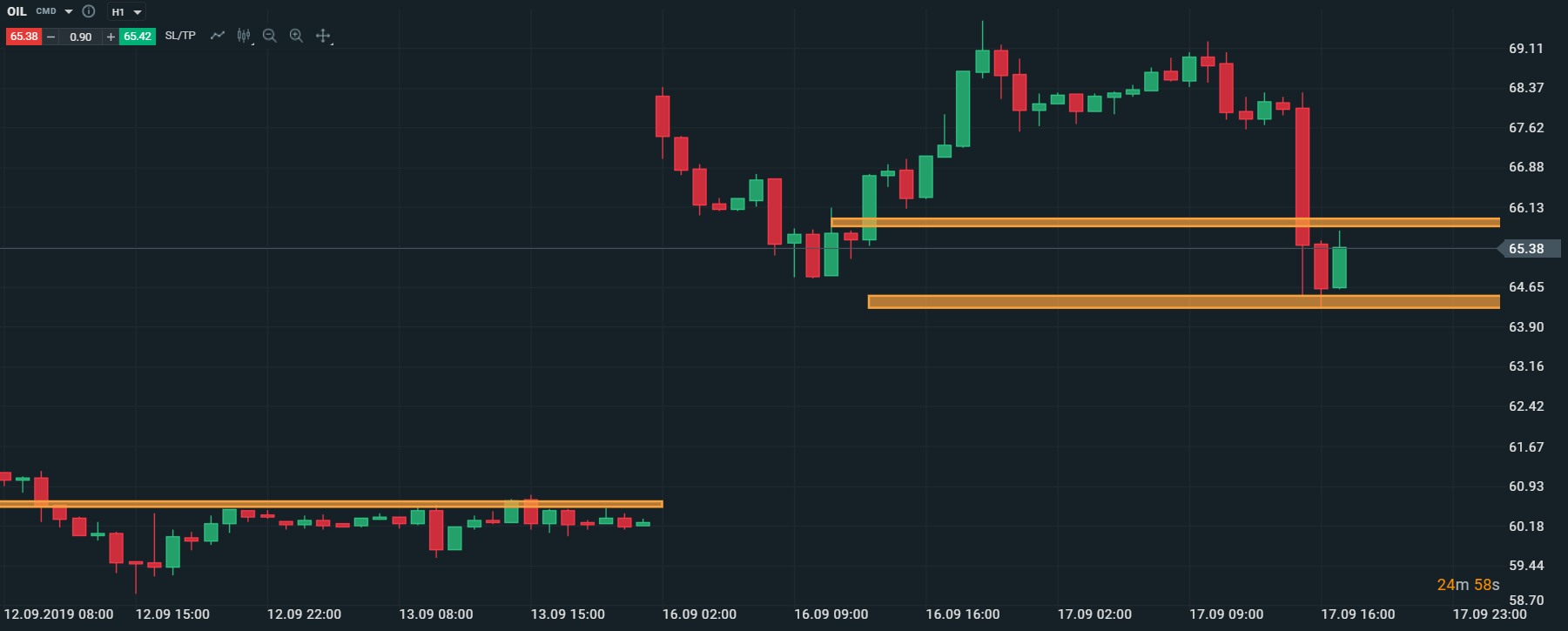 Na druhej strane, cena ropy Brent zaznamenala pokles o viac ako 6% po pozitívnych správach zo Saudskej Arábie. Najväčšia ropná spoločnosť na svete bude schopná obnoviť celú časť produkcie čierneho zlata do 2 až 3 týždňov, čo istým spôsobom viedlo k upokojeniu nálady na trhu s ropou, a teda investori sa prestali obávať nedostatku ropy. V prípade, ak by Saudská Arábia skutočne obnovila produkciu ropy ako sa vyjadrila, v najbližších týždňoch by sme mohli vidieť pokles cien ropy k úrovniam pred útokmi.