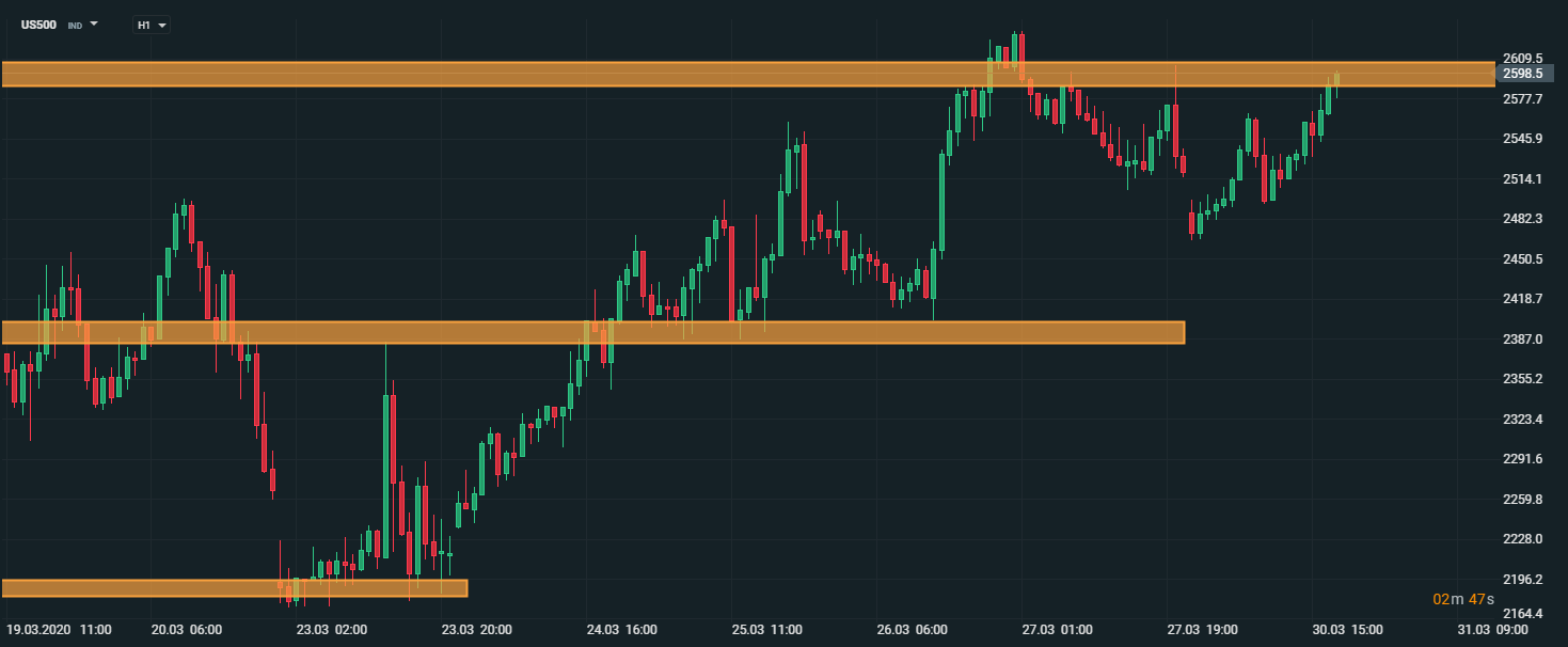Nálada na trhoch bola počas dnešného dňa optimistická, keďže v Spojených štátoch by malo dôjsť k nárastu testovania vírusu, čo investorov do istej miery upokojilo. Vďaka týmto správam zaznamenal nárast aj americký dolár. Ceny ropy zaznamenali pokles, pretože Saudská Arábia plánuje zvýšiť od mája produkciu o dodatočných 600 tisíc barelov. Akciové indexy na základe pozitívnych správ síce zaznamenali nárast, no netreba zabúdať na to, že koronavírus sa rýchlo šíri, čo môže v nasledujúcich dňoch viesť k zhoršeniu nálady na finančných trhoch, čo by mohlo priniesť ďalšie poklesy.