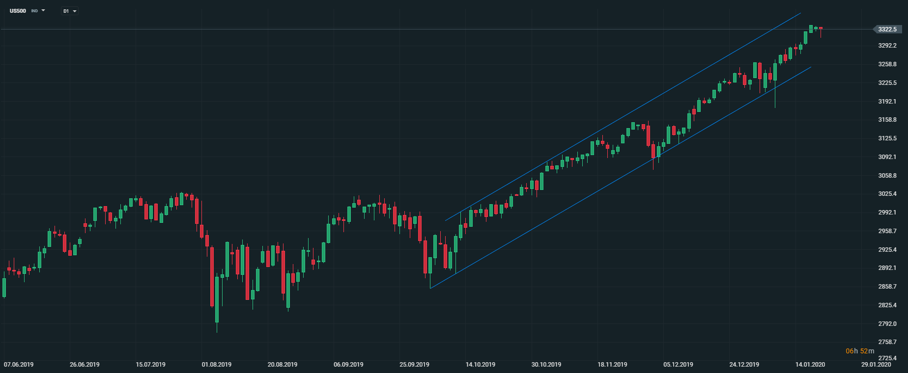 Americký akciový index US500 sa naďalej obchoduje nad hranicou 3300 bodov a je tak v blízkosti historických maxím. V prípade, ak sa cena udrží nad spomínanou hranicou, výhľad ostáva rastový. Zdroj: xStation5