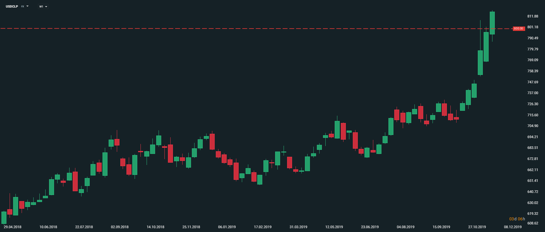 Mezi nejzajímavější dění však určitě patřila situace na chilském pesu, které dnes opět prohloubilo historické minima. Po stagnaci USDCLP v blízkosti úrovně 800 v posledních dnech se dnes pár dostal až na úroveň 816. Hlavním důvodem jsou pokračující protesty a nepokoje v mnoha městech v Chile, které negativně ovlivňují ekonomickou aktivitu. Je čím dál pravděpodobnější, že Chile bude následovat Mexiko na cestě do recese.