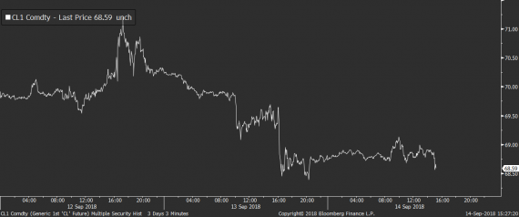 Klidné obchodování pak panuje také na komoditním trhu. Cena ropy WTI se drží mírně pod hranicí 69 dolarů, kam klesla včera po nově předpovědi počasí, která naznačila, že by dopad hurikánu na ropnou infrastrukturu nemusel být nakonec nijak zásadní.