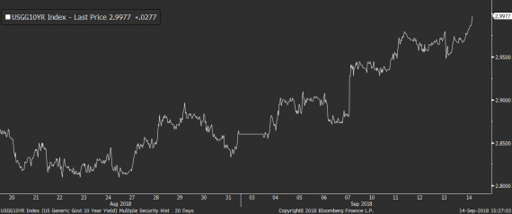Dolaru dnes v růstu pomáhá také postupný růst dluhopisových výnosů, které nechalo v klidu i včerejší zpomalení inflace. Americké 10leté výnosy tak útočí na hranici 3 %, což jen potvrzuje, že se výhled obchodníků ohledně dalšího zvyšování amerických sazeb nijak dramaticky nemění.
