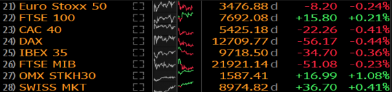 Čtvrteční seance zatím na trzích probíhá podle očekávání v poklidné atmosféře a po mírném růstu z minulých dnů dnes akciové indexy na průměrných objemech pouze přešlapují na místě. Nových fundamentů dnešní seance zatím mnoho nepřinesla a obchodníci se tak zaměřují pouze na pár nových makrodat, které přicházejí z Evropy a z USA. Úroveň rizikových přirážek zůstává i nadále nízká, což akciím a ostatním rizikovým aktivům zatím docela hraje do karet.