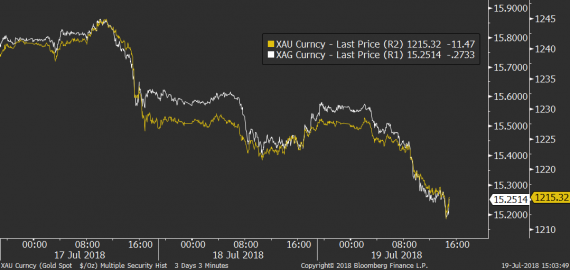 Asi nikoho pak nepřekvapí, že na silný dolar opět doplácí drahé kovy, které v tomto týdnu zdá se už kompletně ztrácí půdu pod nohama.