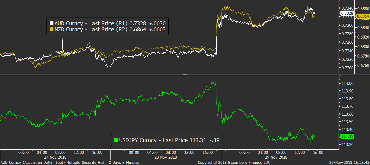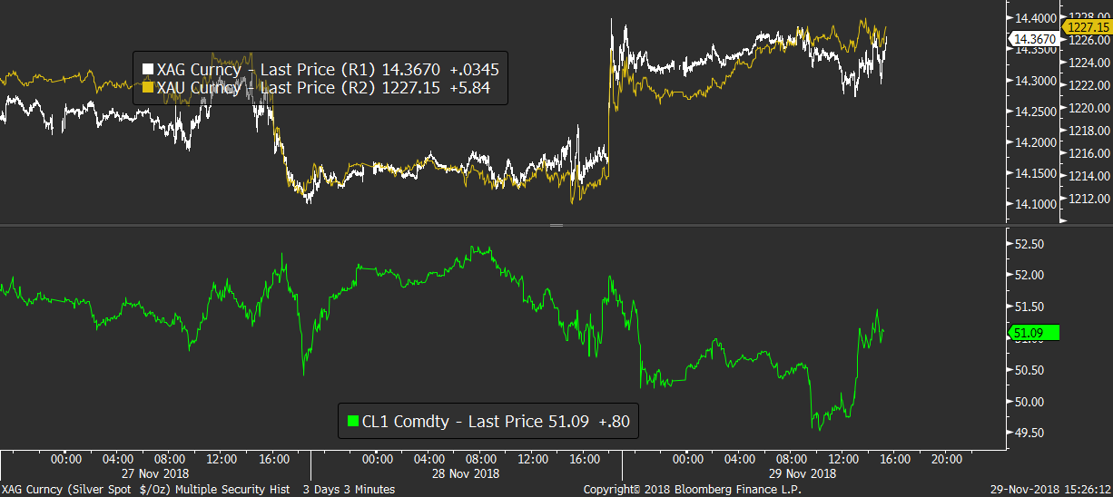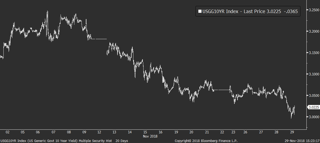 Vyhráno však není, což dokazuje stále hlavně zvýšená úroveň rizikových přirážek. Trhy totiž dál čekají na klíčovou schůzku mezi americkým a čínským prezidentem, která napoví více o tom, jakým směrem se bude ubírat obchodní politika mezi oběma zeměmi. Moudřejší můžeme být už zítra, kdy v Argentině začíná summit G20, na kterém se oba muži potkají.