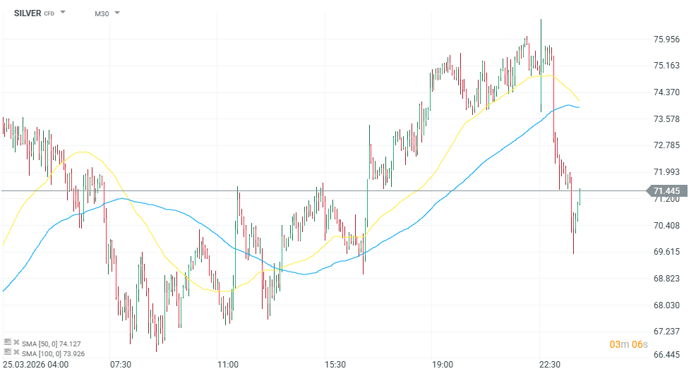 Zlato a striebro dnes výrazne strácajú najmä kvôli rastúcim obavám, že vojna v Iráne nebude mať rýchle riešenie, ako to Trump deklaroval v minulých dňoch. Po prejave amerického prezidenta, v ktorom povedal, že Spojené štáty neprestanú útočiť na Irán, kým nebude otvorený Hormuzský prieliv, došlo k posilneniu ropy o 8 %. Na rastúce ceny ropy reagujú aj drahé kovy a zlato dnes stráca viac ako 3 %, zatiaľ čo striebro takmer 6 %. Zlato sa aktuálne pohybuje nad 4 600 USD, kam kleslo z 4 800 USD. Striebro kleslo zo 75 USD na 71 USD, pričom časť strát už bola skorigovaná, keďže striebro sa dnes pohybovalo aj pod hranicou 70 USD.