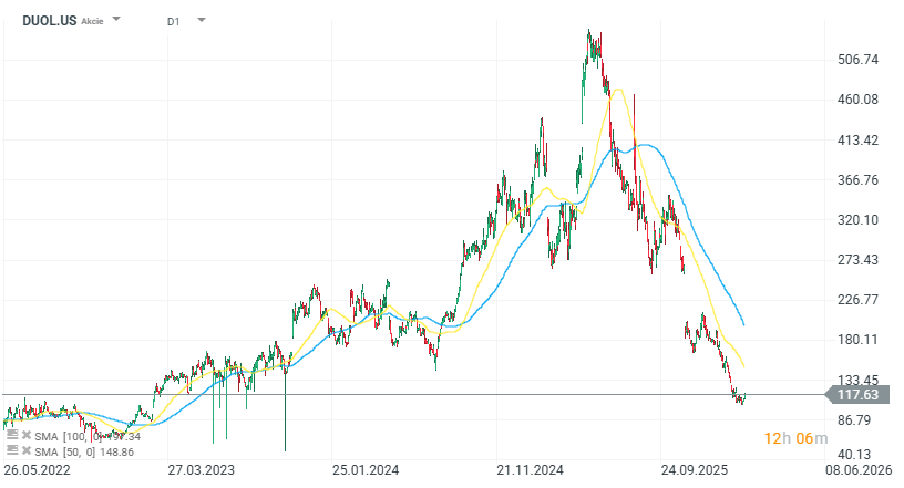 Akcie spoločnosti Duolingo klesli po zverejnení výhľadu v poobchodnom obchodovaní o 25 % pod hranicu 90 USD. Spoločnosť sa tak dostala na najnižšiu úroveň od februára 2023. Od začiatku tohto roka akcie stratili približne 50 % svojej hodnoty. Negatívna reakcia trhu odzrkadľuje obavy investorov z pomalšieho rastu a nižšej ziskovosti.