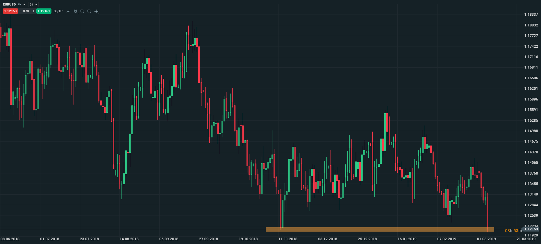 Európska centrálna banka ponechala kľúčové úrokové sadzby bez zmeny. Európske banky dostanú ďalšiu finančnú injekciu. Nová séria dlhodobých refinančných operácií (TLTRO 3) sa začne v septembri tohto roka a bude pokračovať do marca 2021. „Tieto operácie umožnia udržať priaznivé úverové podmienky a sprostredkujú hladký prenos menovej politiky,“ povedal vo svojom úvodnom vyhlásení po zasadaní Rady guvernérov šéf ECB Mario Draghi. Draghi tiež uviedol, že riziká sú aj napriek uvoľnenej monetárnej politike vychýlené smerom nadol. ECB v tomto roku neplánuje pristúpiť k uťahovaniu monetárnej politiky formou zvyšovania úrokových sadzieb. ECB znížila odhad hospodárskeho rastu v roku 2019 z 1,7% na 1,1%. Súčasne znížila odhad rastu inflácie do roku 2021. Odhad rastu inflácie v tomto roku sa znížil z 1,6% na 1,2%. Nová makroekonomická projekcia poukazuje na výraznejšie zníženie rastu, než sa pôvodne očakávalo. Rozhodnutie prijať nové stimulačné opatrenia na podporu hospodárskeho rastu prišlo len tri mesiace po tom, čo ECB pristúpila k zrušeniu kvantitatívneho uvoľňovania. V nadväznosti na zníženie projekcie hospodárskeho rastu a odklad uťahovania monetárnej politiky, sa európska spoločná mena dostala pod tlak. Menový pár EURUSD zaznamenal pokles k najnižším úrovniam od apríla 2017. Pár testuje support v oblasti 1,12 EURUSD. Pozitívne výsledky z amerického trhu práce by mohli podporiť americký dolár. V prípade prerazenia úrovne 1,12 EURUSD, sa môže otvoriť priestor na pokles k úrovni 1,10 EURUSD.