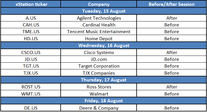 Spoločnosti, ktoré tento týždeň zverejňujú svoje výsledky. Zdroj: XTB