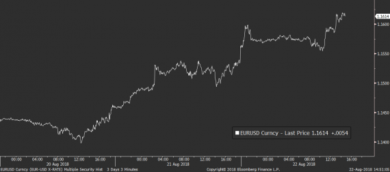 Na ostatních měnových párech dolar buď stagnuje nebo ztrácí. Pod tlakem zatím zůstává na páru s eurem, kde se vrací nad 1,16 EURUSD a kompletně tak likviduje zisky, které nabral v první polovině srpna. Fundamentálně se podle nás situace na dolaru výrazněji nemění, ale americké měně rozhodně nepomohly výroky Trumpa na adresu americké centrální banky.