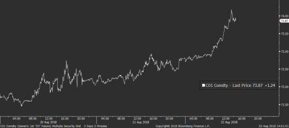 Zajímavá je pak situace také na ropě, která dnes výrazně navázala na svůj včerejší růst, když se v případě severomořského brentu vrátila nad 74 dolarů za barel. Ropě začíná pomáhat napjatá politická situace ve Venezuele, která čelí politické krizi po více než 90% devalvaci vlastní měny. V 16:30 nás přitom čeká zveřejnění amerických ropných zásob, což může být další z fundamentů, který by mohl mít potenciál ceny ropy rozvlnit.