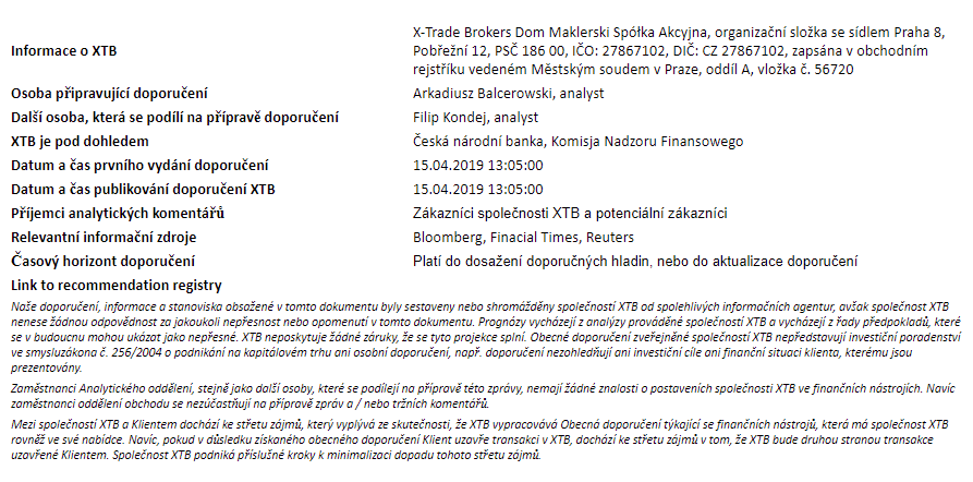 Tento materiál je marketingovou komunikáciou v zmysle čl. 24 ods. 3 smernice Európskeho parlamentu a Rady 2014/65/EÚ z 15. mája 2014 o trhoch s finančnými nástrojmi, ktorou sa mení smernica 2002/92/ES a smernica 2011/61/EÚ (MiFID II). Marketingová komunikácia nie je investičným odporúčaním ani informáciou odporúčajúcou alebo navrhujúcou investičnú stratégiu v zmysle nariadenia Európskeho parlamentu a Rady (EÚ) č. 596/2014 zo 16. apríla 2014 o zneužívaní trhu (nariadenie o zneužívaní trhu) a o zrušení smernice Európskeho parlamentu a Rady 2003/6/ES a smerníc Komisie 2003/124/ES, 2003/125/ES a 2004/72/ES a delegovaného nariadenia Komisie (EÚ) 2016/958 z 9. marca 2016, ktorým sa dopĺňa nariadenie Európskeho parlamentu a Rady (EÚ) č. 596/2014, pokiaľ ide o regulačné technické predpisy upravujúce technické opatrenia na objektívnu prezentáciu investičných odporúčaní alebo iných informácií, ktorými sa odporúča alebo navrhuje investičná stratégia, a na zverejňovanie osobitných záujmov alebo uvádzanie konfliktov záujmov v zmysle zákona č. 566/2001 Z. z. o cenných papieroch a investičných službách. Marketingová komunikácia je pripravená s najvyššou starostlivosťou, objektivitou, prezentuje fakty známe autorovi k dátumu prípravy a neobsahuje žiadne hodnotiace prvky. Marketingová komunikácia je pripravená bez zohľadnenia potrieb klienta, jeho individuálnej finančnej situácie a nijakým spôsobom nepredstavuje investičnú stratégiu. Marketingová komunikácia nepredstavuje ponuku na predaj, ponuku, predplatné, výzvu na nákup, reklamu alebo propagáciu akýchkoľvek finančných nástrojov. XTB S.A. organizačná zložka nezodpovedá za žiadne kroky alebo opomenutia klienta, najmä za nadobudnutie alebo predaj finančných nástrojov. XTB nezodpovedá za žiadnu stratu alebo škodu, vrátane, bez obmedzenia, akejkoľvek straty, ktorá môže vzniknúť priamo alebo nepriamo, spôsobená na základe informácií obsiahnutých v tejto marketingovej komunikácii. V prípade, že marketingová komunikácia obsahuje akékoľvek informácie o akýchkoľvek výsledkoch týkajúcich sa finančných nástrojov v nej uvedených, nepredstavujú žiadnu záruku ani prognózu budúcich výsledkov. Minulá výkonnosť nemusí nevyhnutne naznačovať budúce výsledky a každá osoba konajúca na základe týchto informácií tak robí výlučne na vlastné riziko.