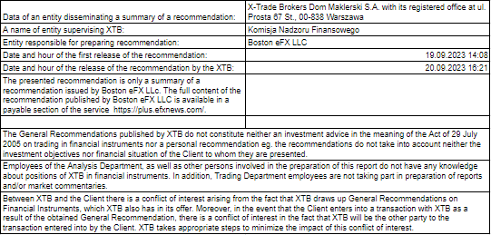 Tento materiál je marketingovou komunikáciou v zmysle čl. 24 ods. 3 smernice Európskeho parlamentu a Rady 2014/65/EÚ z 15. mája 2014 o trhoch s finančnými nástrojmi, ktorou sa mení smernica 2002/92/ES a smernica 2011/61/EÚ (MiFID II). Marketingová komunikácia nie je investičným odporúčaním ani informáciou odporúčajúcou alebo navrhujúcou investičnú stratégiu v zmysle nariadenia Európskeho parlamentu a Rady (EÚ) č. 596/2014 zo 16. apríla 2014 o zneužívaní trhu (nariadenie o zneužívaní trhu) a o zrušení smernice Európskeho parlamentu a Rady 2003/6/ES a smerníc Komisie 2003/124/ES, 2003/125/ES a 2004/72/ES a delegovaného nariadenia Komisie (EÚ) 2016/958 z 9. marca 2016, ktorým sa dopĺňa nariadenie Európskeho parlamentu a Rady (EÚ) č. 596/2014, pokiaľ ide o regulačné technické predpisy upravujúce technické opatrenia na objektívnu prezentáciu investičných odporúčaní alebo iných informácií, ktorými sa odporúča alebo navrhuje investičná stratégia, a na zverejňovanie osobitných záujmov alebo uvádzanie konfliktov záujmov v zmysle zákona č. 566/2001 Z. z. o cenných papieroch a investičných službách. Marketingová komunikácia je pripravená s najvyššou starostlivosťou, objektivitou, prezentuje fakty známe autorovi k dátumu prípravy a neobsahuje žiadne hodnotiace prvky. Marketingová komunikácia je pripravená bez zohľadnenia potrieb klienta, jeho individuálnej finančnej situácie a nijakým spôsobom nepredstavuje investičnú stratégiu. Marketingová komunikácia nepredstavuje ponuku na predaj, ponuku, predplatné, výzvu na nákup, reklamu alebo propagáciu akýchkoľvek finančných nástrojov. XTB S.A. organizačná zložka nezodpovedá za žiadne kroky alebo opomenutia klienta, najmä za nadobudnutie alebo predaj finančných nástrojov. XTB nezodpovedá za žiadnu stratu alebo škodu, vrátane, bez obmedzenia, akejkoľvek straty, ktorá môže vzniknúť priamo alebo nepriamo, spôsobená na základe informácií obsiahnutých v tejto marketingovej komunikácii. V prípade, že marketingová komunikácia obsahuje akékoľvek informácie o akýchkoľvek výsledkoch týkajúcich sa finančných nástrojov v nej uvedených, nepredstavujú žiadnu záruku ani prognózu budúcich výsledkov. Minulá výkonnosť nemusí nevyhnutne naznačovať budúce výsledky a každá osoba konajúca na základe týchto informácií tak robí výlučne na vlastné riziko.