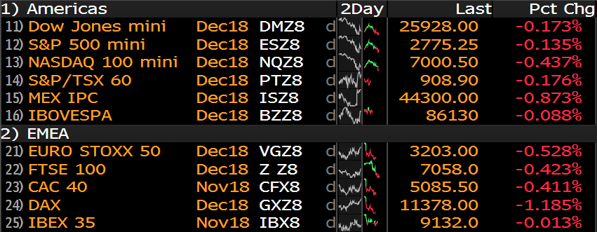 Z politických rizik zůstává ve vzduchu dál hlavně otázka americko-čínských obchodních vztahů a brexit, který v posledních dnech začal opět nepříjemně doléhat na britskou libru. Dohoda mezi EU a Británií totiž naráží nejen koaličního partnera Theresy Mayové (DUP), ale i mezi vlastními spolustraníky.