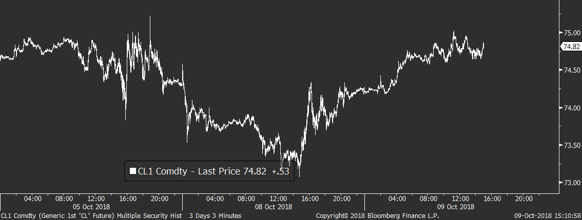 Na komoditním trhu drží silnější dolar a vyšší výnosy pod tlakem hlavně drahé kovy, které po včerejší korekci zůstávají na nižších úrovních. Zajímavá je situace na ropě, která dnes navazuje na včerejší růst a v případě americké WTI atakuje hranici 75 dolarů za barel. Ropě přitom dál pomáhá hlavně neochota kartelu OPEC navyšovat produkci a kompenzovat tak výpadek, který na trhu vyvolá uvalení amerických sankcí na Írán.