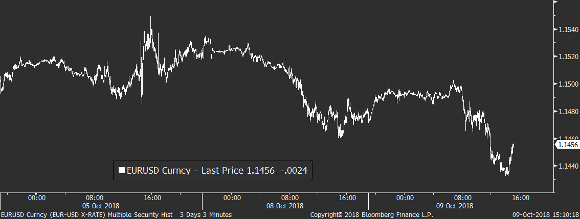 To má dnes negativní dopad hlavně na euro. Zatímco v USA je totiž růst výnosů dán přísnější měnovou politikou, v Evropě má co dočinění s vyššími rizikovými přirážkami. Evropská měna tak dnes vůči dolaru začíná znovu ztrácet a klesá na 1,1450 EURUSD.