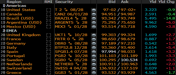 Stejně jako včera, i dnes je seance bez významnějších fundamentů a tak v centru dění zůstává situace na trhu s dluhopisy a nervozita, která se z něj na ostatní trhy dál pozvolna šíří. Po včerejším svátku v USA dnes trh s americkými dluhopisy poprvé v týdnu otevřel a americké výnosy se zatím docela drží. Stejné se však nedá říci o situaci v Evropě, kde výnosy pokračují v růstu, když například v Itálii u desetiletých splatností rostou o více než šest bazických bodů.