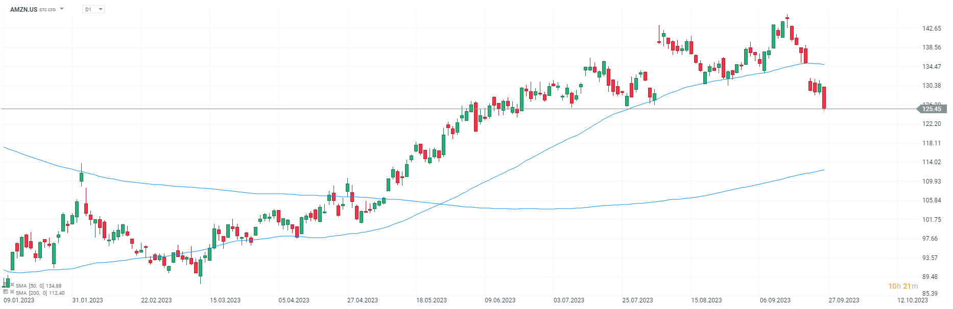 V súčasnosti sa cena akcie AMZN.US pohybuje pod 50-dňovým jednoduchým kĺzavým priemerom. Zdroj: xStation5