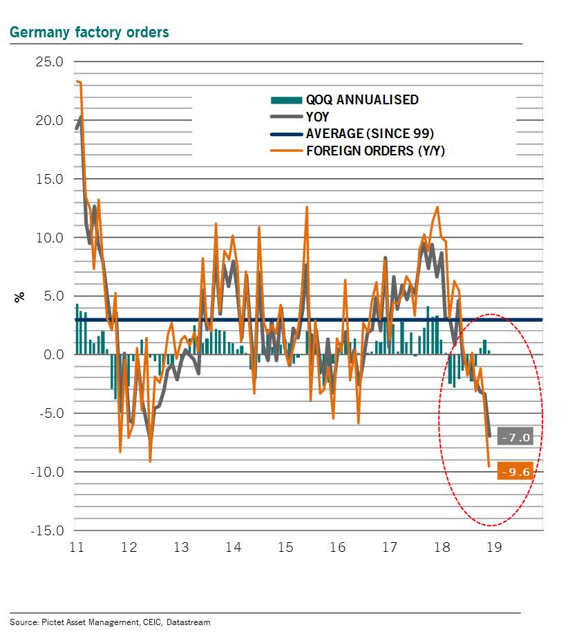 Vývoj medziročnej zmeny celkových a zahraničných nemeckých priemyselných objednávok (@skhanniche)