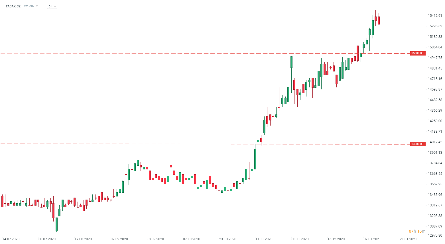 Ve čtvrtek jsme byli svědky pozitivního vývoje na akciových trzích. Mírný růst na západních indexech však nenásledovala pražská burza, která se v závěru seance ponořila do negativního teritoria. Index PX ztratil 0,09 % a seanci zakončil na 1 075,6 bodech. Po ranním růstu až k úrovni 1 081 bodů index plynule v dalším průběhu seance ztrácel. Na Blue Chips akciích jsme byli svědky pouze malých cenových změn. Vyšší než jednoprocentní ztrátu zaznamenal Philip Morris (TABAK.CZ;-1,03 % na 15 320 Kč). Lehce v červených číslech skončila také Moneta Money Bank (MONET.CZ;-0,14 % na 71,90 Kč). Naopak další komerční banky mírně rostly – Komerční banka (KOMB.CZ;+0,14 % na 710 Kč) a Erste Bank (RBAG.CZ;+0,12 % na 687 Kč). Energetická společnost ČEZ (CEZ1.CZ) přidala 0,18 % a její akcie zakončily seanci na 544 Kč.