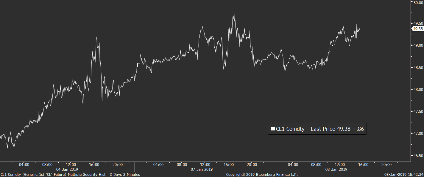 Co se komoditního trhu týká, jen mírnou korekci dnes pozorujeme na cenách drahých kovů, zatímco ropa pokračuje ve svém pozvolném růstu. Americká WTI dnes přidává další 1,5 % a znovu se tak vrací nad hranici 49 dolarů za barel.