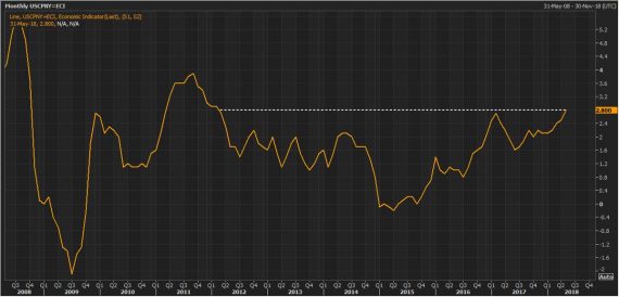 Pred zajtrajším zasadnutím FEDu chýbal posledný vstup do jeho rozhodovacích procesov – májová inflácia. Tá bola zverejnená pred chvíľou a nesklamala. Celková inflácia vzrástla na 2,8%, čo predstavuje najvyššiu úroveň za posledných 6 rokov. Dôležitejší údaj, jadrová inflácia (očistená o ceny palív a potravín) vzrástla medzimesačne o 0,2% (čakal sa rast o 0,1%) a dostala sa na úroveň 2,2%. To je najviac od januára 2016.