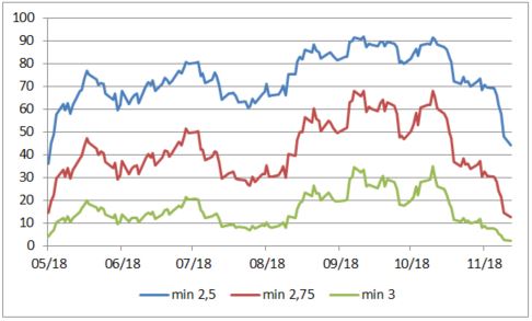 Trhová implikovaná pravdepodobnosť minimálnej úrokovej sadzby koncom roka 2019