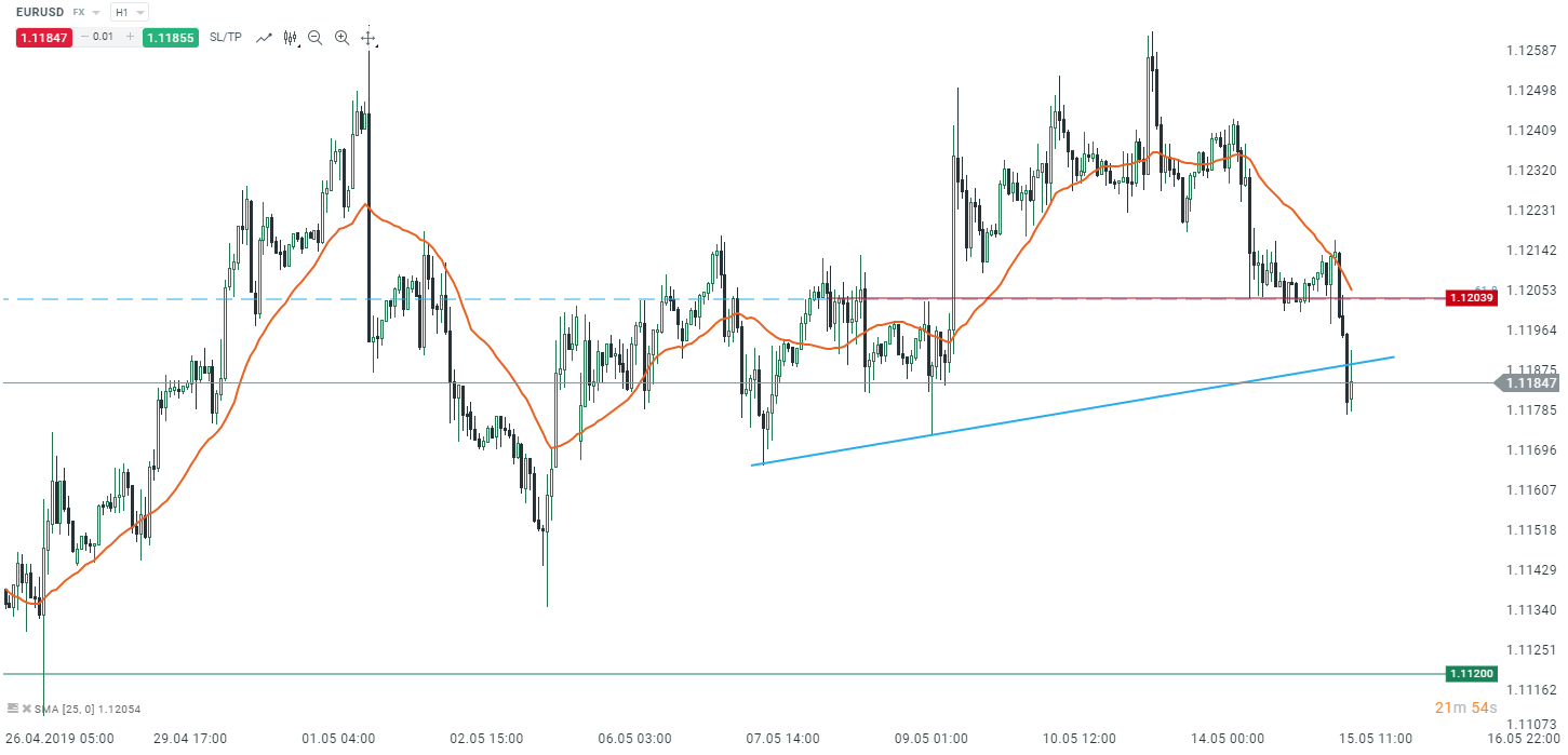 EURUSD v reakce na data mírně rostl. Býci se rozhodli vstoupit do trendu na základě rostoucí trendové čáry, ovšem v cestě jim stojí mnoho překážek. Pokud by se je nepodařilo překonat, tak by se pár mohl vrátit až k úrovni 1,11. Zdroj. xStation5