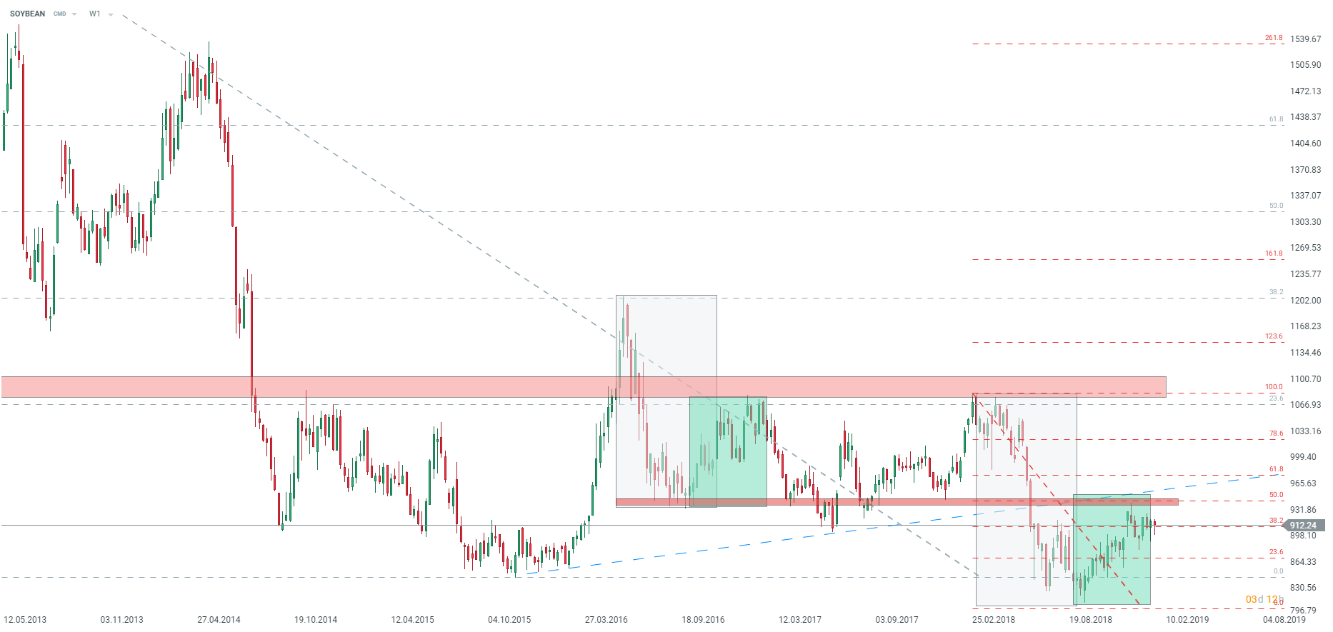 Ceny pravděpodobně neprorazí hladinu 950 centů za bušl, aniž by byla kompletně odstraněna čínská cla na produkci USA. Zdroj: xStation5