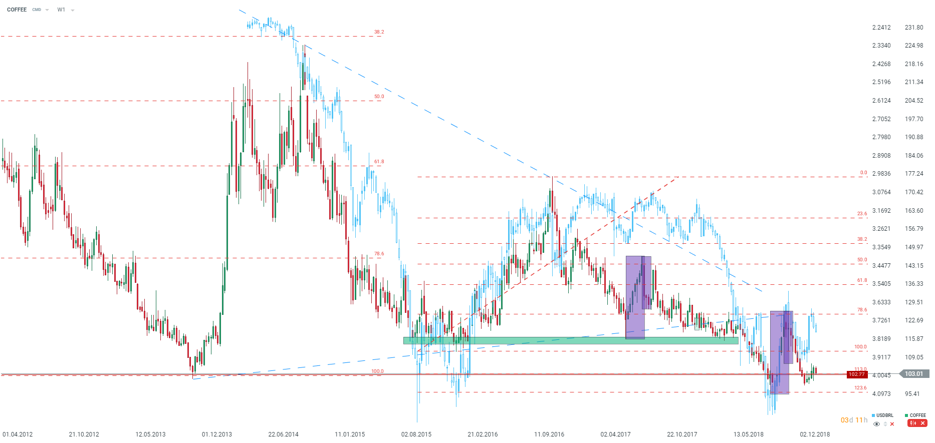 Posilování BRL naznačuje, že by cena mohla v krátkodobém horizontu stoupat. Zdroj: xStation5