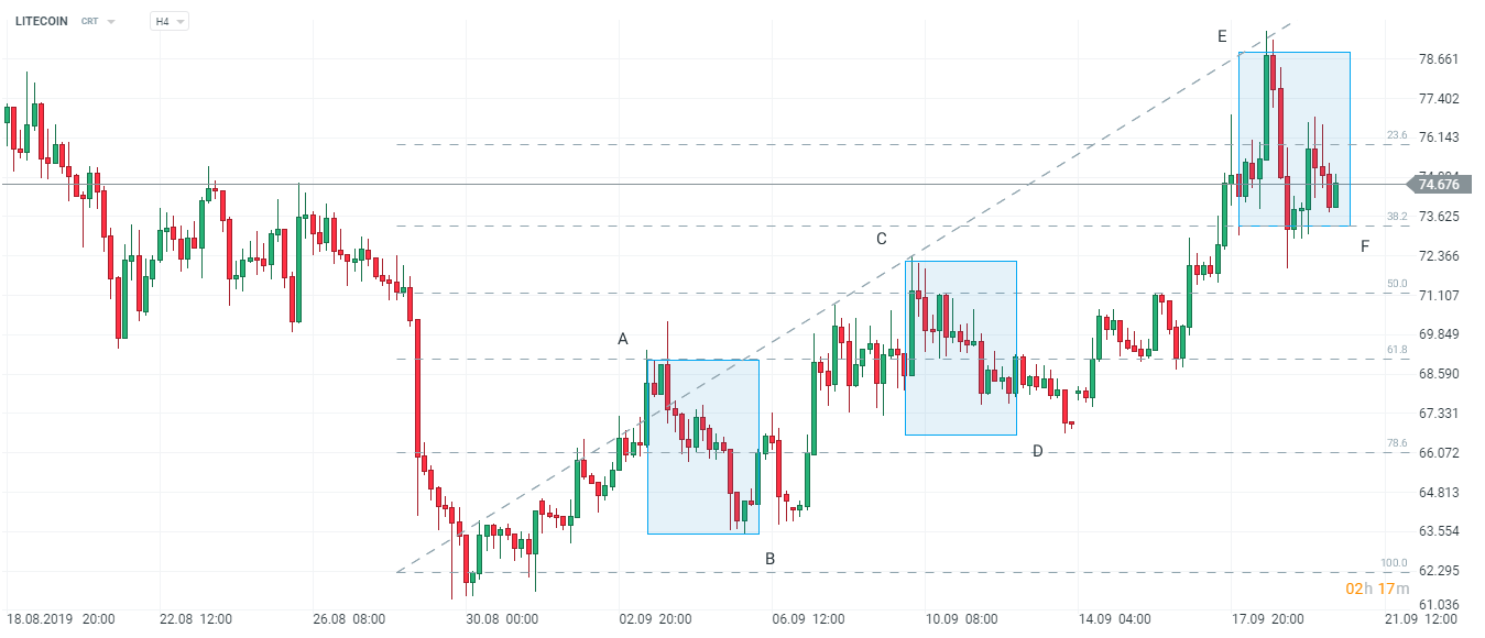 Posledný pokles Litecoinu nedokázal preraziť rozsah naznačený jasnými obdĺžnikmi na grafe vyššie. Dá sa teda predpokladať, že by sa mohol obnoviť býčí trend. Pri pohľade do budúcnosti môžu býci zacieliť na úroveň 83,3 USD, ale ak nedokážu udržať kontrolu nad trhom, potom sa medvede môžu pokúsiť posunúť cenu smerom k úrovni 73,3 USD. Ak sa možný klesajúci trend rozšíri, ďalší cieľ pre medvede možno nájsť na úrovni 69 USD.