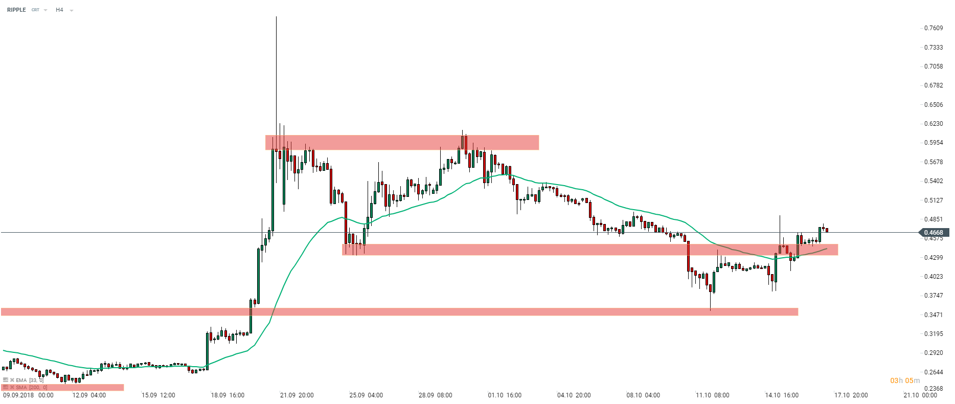 Opakovaná snaha prodejců RIPPLE dostat se zpět do zóny 0,43 - 0,45 dolarů se nesetkala s úspěchem a otevřela býkům cestu vzhůru. V blízkosti aktuální hladiny se nechachází žádná silná rezistence, a tak by se kryptoměna mohla dostat až k úrovni 0,58 dolarů na úroveň swingu z druhé poloviny září. Zdroj: xStation5