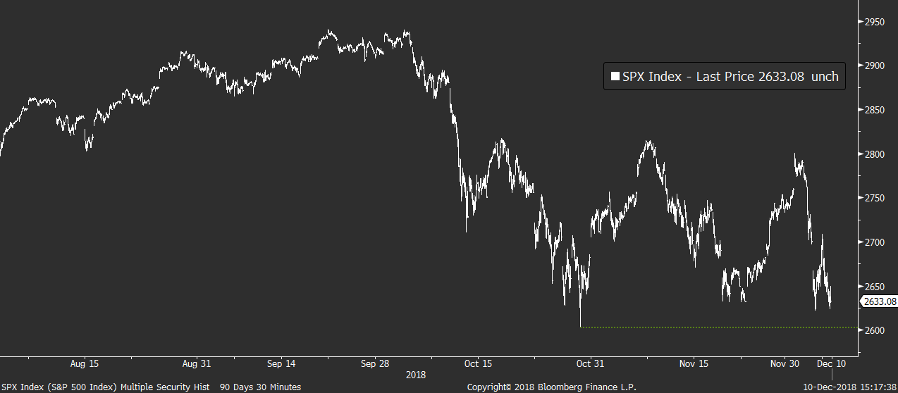 Vedle dění v Británii se dnes většina trhu zaměřuje na to, jaký bude další vývoj situace na amerických indexech, které si procházejí velmi volatilním obdobím. Akciím dnes nijak nepomohla zpráva o stížnosti čínského zástupce ministra zahraničí, který po amerických diplomatech požaduje vysvětlení nedávného zatčení čínské finanční ředitelky společnosti Huawei. Pomáhat akciím by naopak mohla blízkost klíčového supportu 2 600 dolarů na S&P500, který zatím drží tento index pevně v konsolidačním pásmu, do kterého se dostal po říjnových výprodejích.