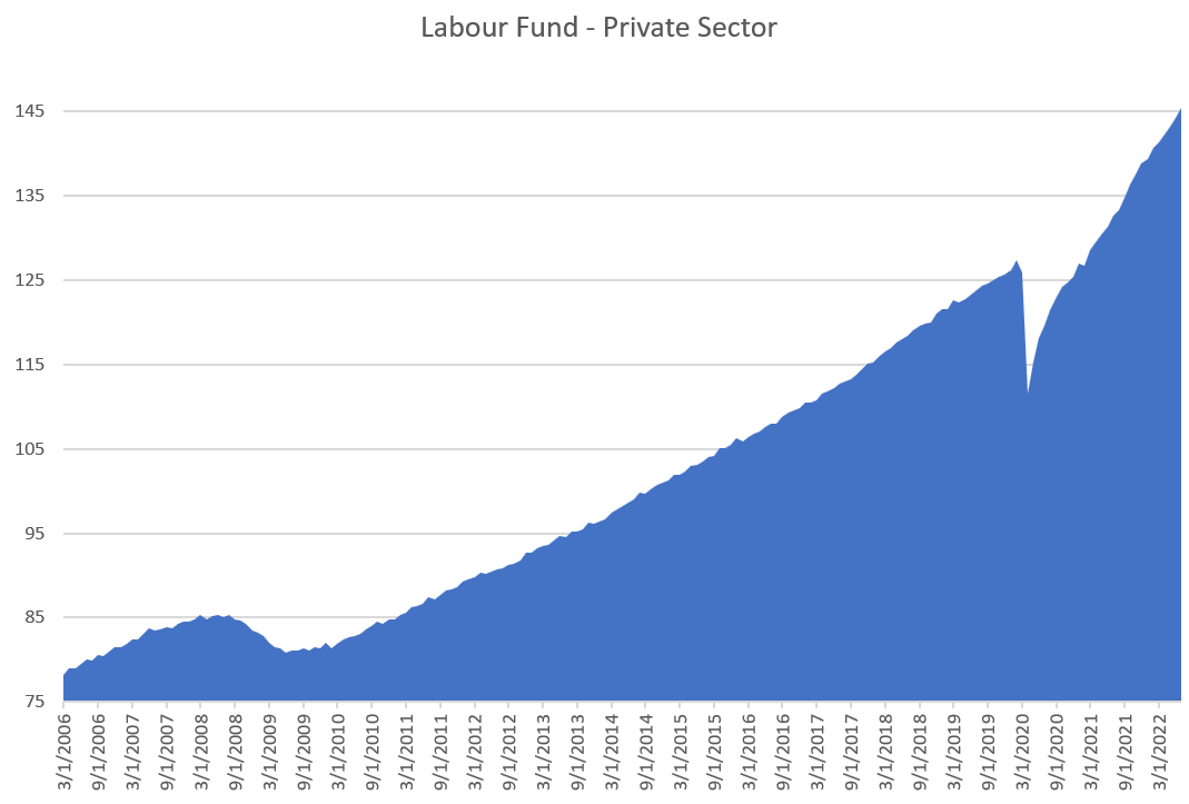 Pracovní fond prudce vzrostl díky zvýšení mezd a nově zaměstnaným osobám. To může dále podporovat inflaci. Zdroj: Macrobond, XTB