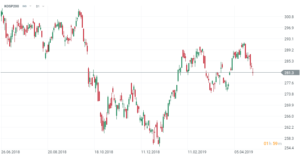 Kórejský KOSP200 zaznamenal pokles po neuspokojivých dátach HDP. Zdroj: xStation5