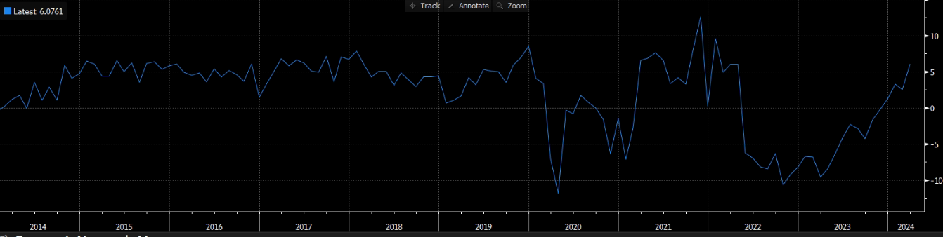 Maloobchodné tržby za marec prekonali odhad, ktorý bol stanovený na 2,8 % medziročne, a v reálnom vyjadrení dosiahli 6,1 % medziročne v porovnaní s 2,5 % medziročne vo februári.