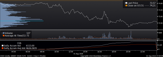 Největší obchody podle objemu na Brent (aktivní future kontrakt)