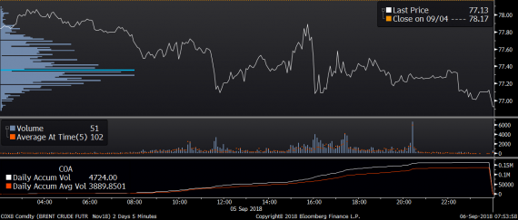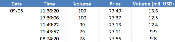 Největší obchody podle objemu na Brent (aktivní future kontrakt)