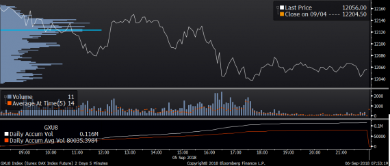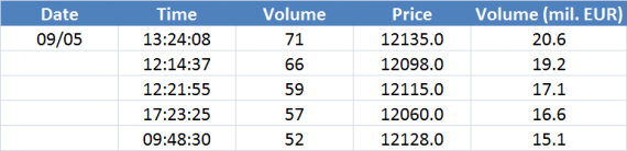 Největší obchody podle objemu na DAX (aktivní future kontrakt)