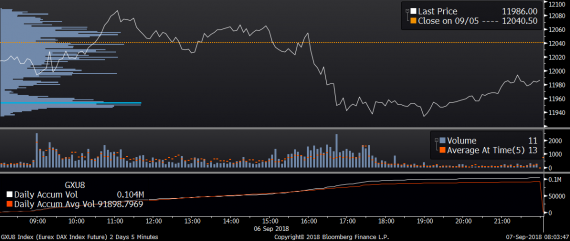 Největší obchody podle objemu na DAX (aktivní future kontrakt)
