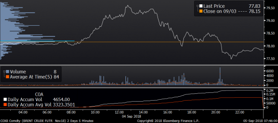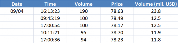 Největší obchody podle objemu na Brent (aktivní future kontrakt)