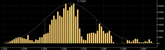 - nejvíce obchodů zrealizováno na ceně 1.1565