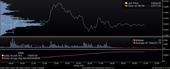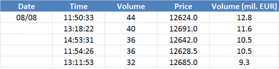 Největší obchody podle objemu na DAX (aktivní future kontrakt)