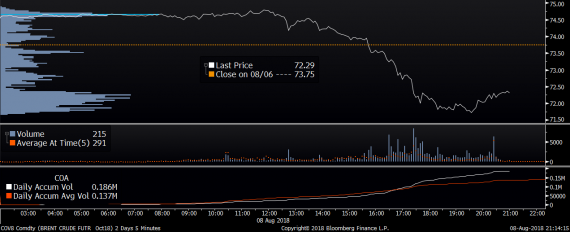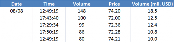 Největší obchody podle objemu na Brent (aktivní future kontrakt)