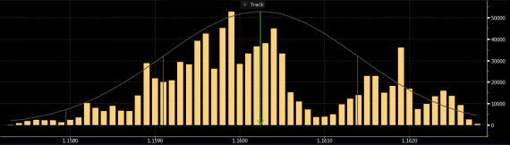 - nejvíce obchodů zrealizováno na ceně 1.1599