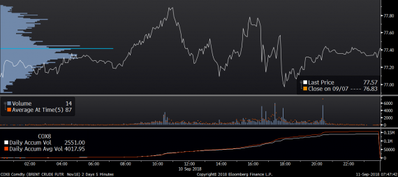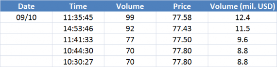 Největší obchody podle objemu na Brent (aktivní future kontrakt)
