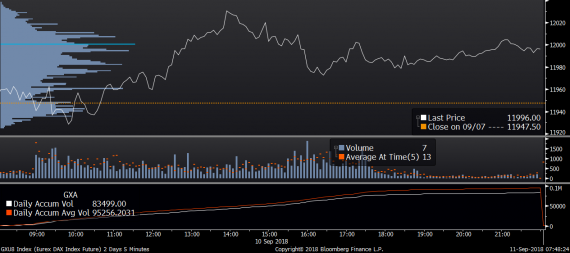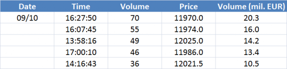 Největší obchody podle objemu na DAX (aktivní future kontrakt)